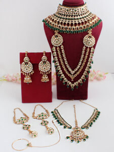 “Elegant and intricate bridal jewellery set designed for the perfect wedding look. Includes necklace, earrings, maang tikka & more – a complete traditional charm for your special day.”