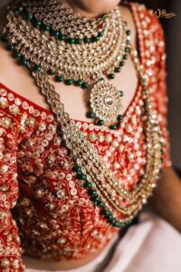“Elegant and intricate bridal jewellery set designed for the perfect wedding look. Includes necklace, earrings, maang tikka & more – a complete traditional charm for your special day.”